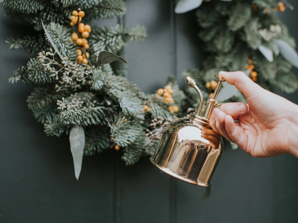 Dárkový set - zelená konvička s kropítkem & měděný rozprašovač