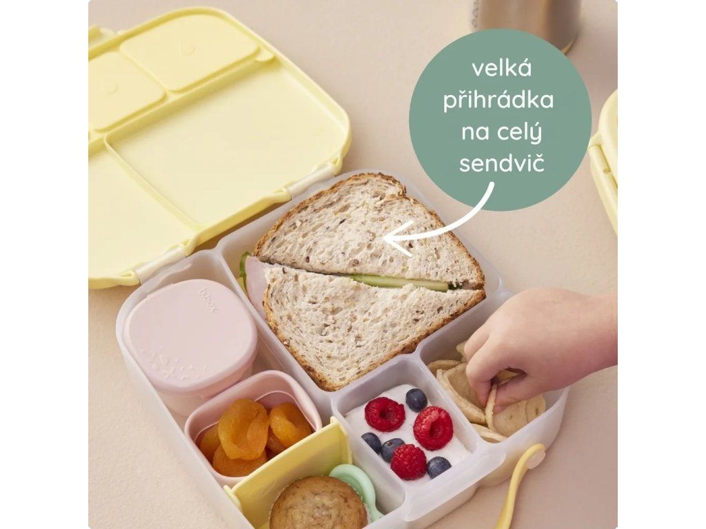 - Boxy obsahují několik přihrádek na pestrou svačinu / oběd